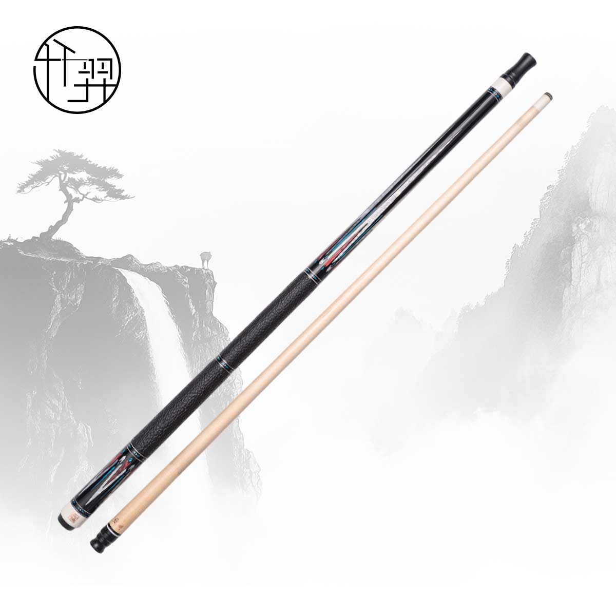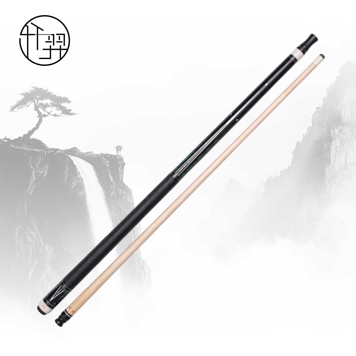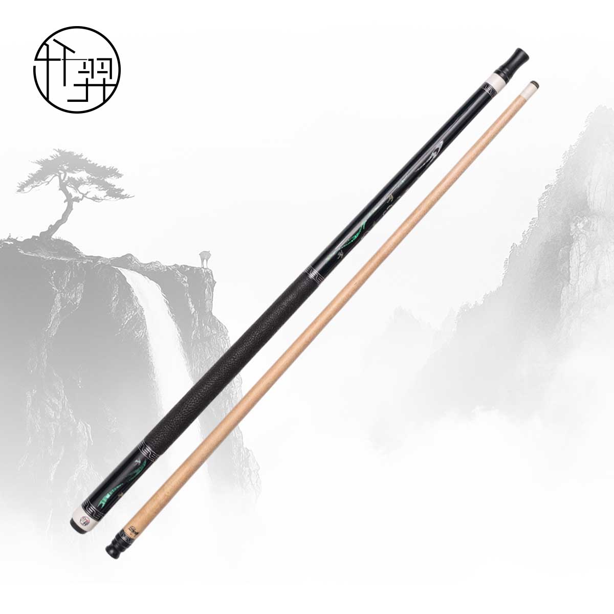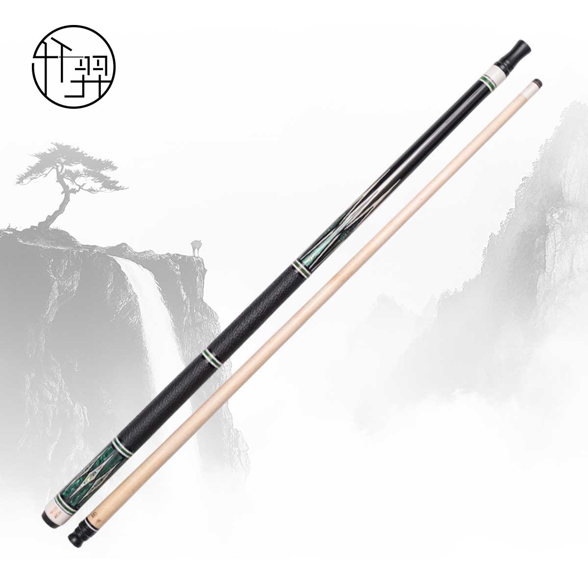 * Chuôi gỗ Ebony ghép 120 mảnh, khảm Juma ngà voi, vỏ bào ngư tự nhiên, đá xanh |